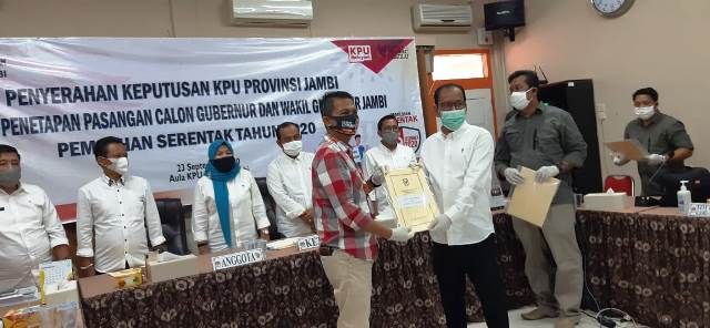 Ketua KPU Provinsi Jambi M Subhan menyatakan, "Dengan ini kami nyatakan semua berkas dan syarat ke tiga pasangan calon lengkap dan memenuhi syarat. Sehingga saat ini sudah sah menjadi Calon Gubernur dan Calon Wakil Gubernur Jambi pada Pilgub Jambi, 9 Desember 2020 yang akan datang".