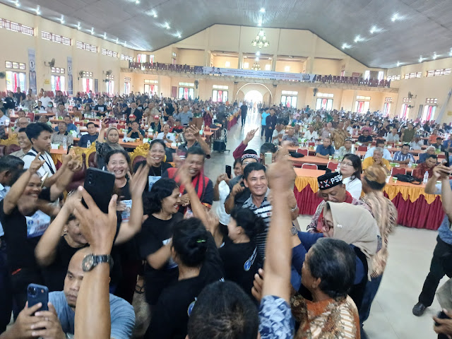 Dituturkan Nomor Urut 1 ini, untuk melawan koalisi penguasa butuh keberanian dan nyali, bagaimana Amang/Inang kita siap dan setuju melawan koalisi penguasa? ujarnya seolah minta pendapat, kalau Amang /Inang siap dan setuju mengalahkan koalisi penguasa mari kita angkat tangan dengan mengangkat satu jari ke atas, dengan serentak penuh semangat mereka mengangkat tangan dengan satu jari ke atas menandakan pilih Nomo Urut 1.